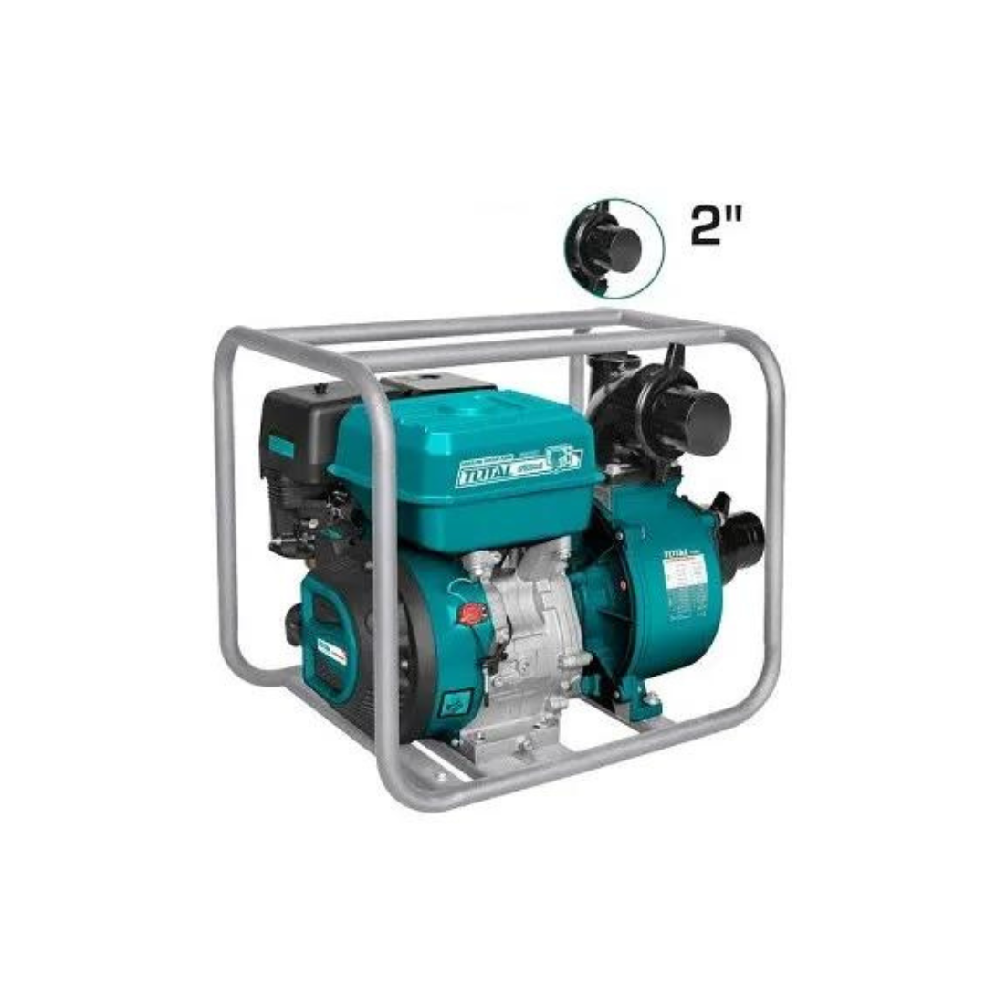 Pompe à eau essence avec un diamètre d’orifice d’aspiration de 50 mm (2″) et un débit maximal de 550 L/min.